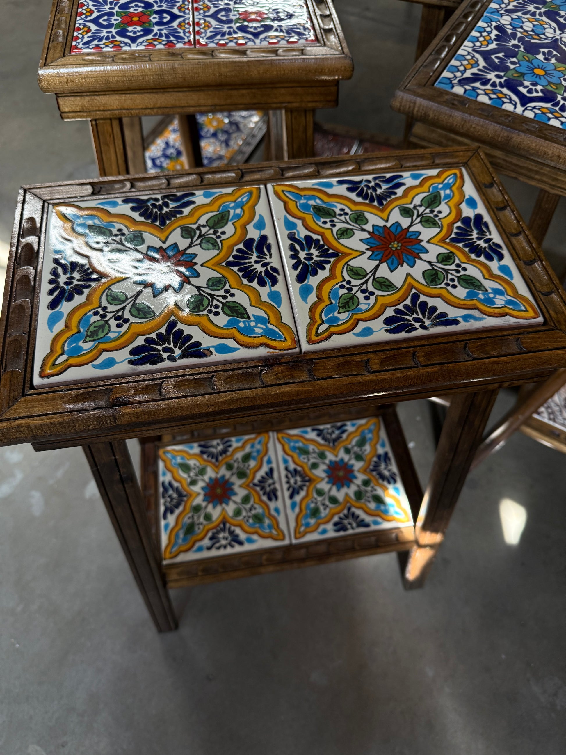 Bring color and craftsmanship into your home with our one-of-a-kind handmade accent tables, each designed with vibrant Talavera-inspired tiles and a rich wooden frame. Perfect as a side table, plant stand, or statement piece, every table is carefully crafted by artisans in Mexico, making each one unique.